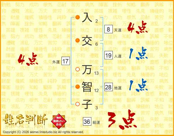 入交万智子さんの外運は17画の4点!