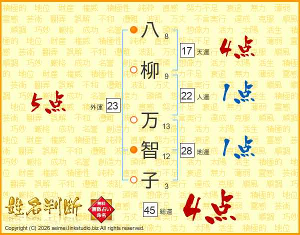八柳万智子さんの総運は45画の4点!