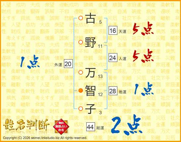 古野万智子さんの総運は44画の2点!