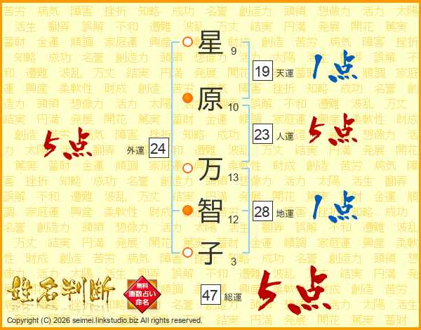 星原万智子さんの総運は47画の5点!