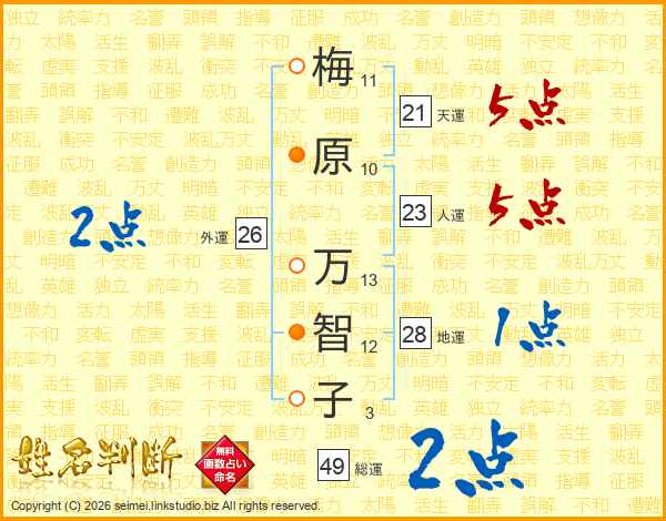 梅原万智子さんの総運は49画の2点!