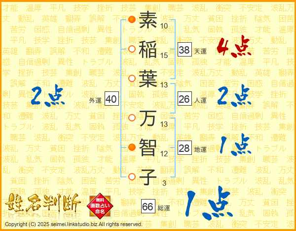 素稲葉万智子さんの総運は66画の1点!