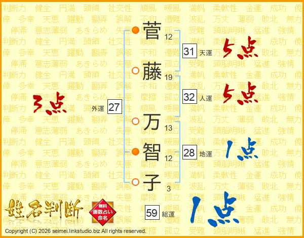 菅藤万智子さんの天運は31画の5点!