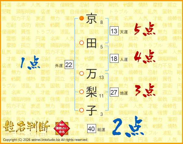 京田万梨子さんの天運は13画の5点!