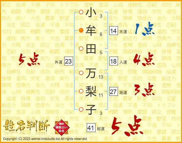 小牟田万梨子さんの総運は41画の5点!