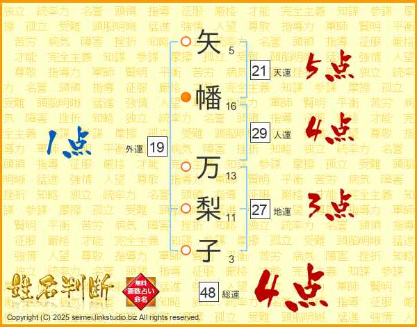 矢幡万梨子さんの総運は48画の4点!
