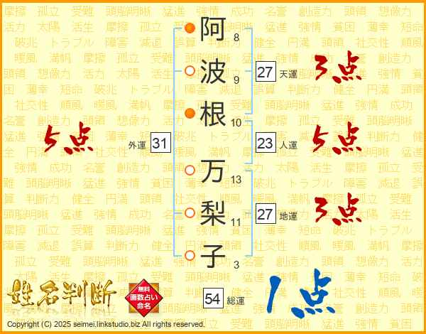 阿波根万梨子さんの総運は54画の1点!