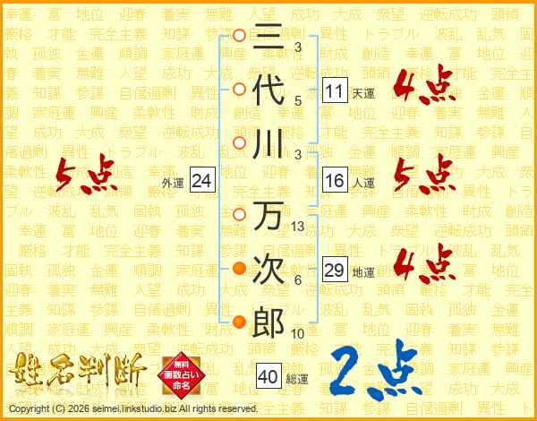 三(3画)代(5画)川(3画) 万(13画)次(6画)郎(10画)