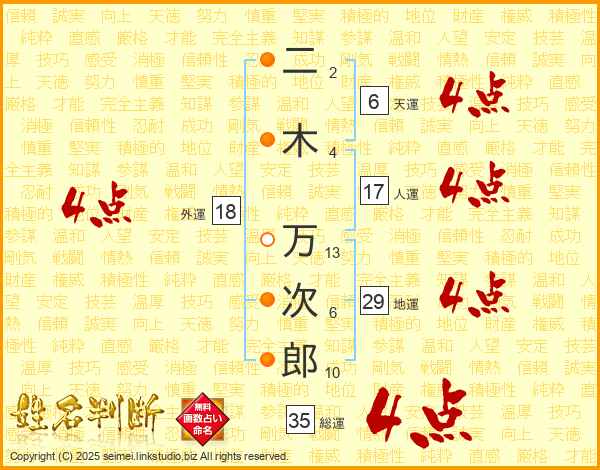 二木万次郎さんの総運は35画の4点!