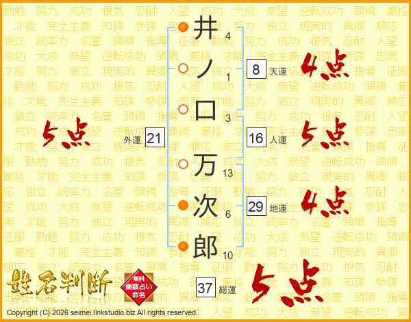 井(4画)ノ(1画)口(3画) 万(13画)次(6画)郎(10画)
