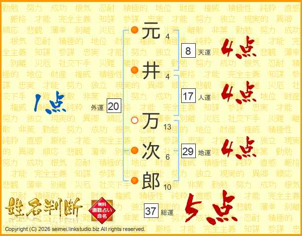 元(4画)井(4画) 万(13画)次(6画)郎(10画)