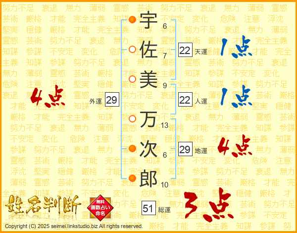 宇佐美万次郎さんの総運は51画の3点!