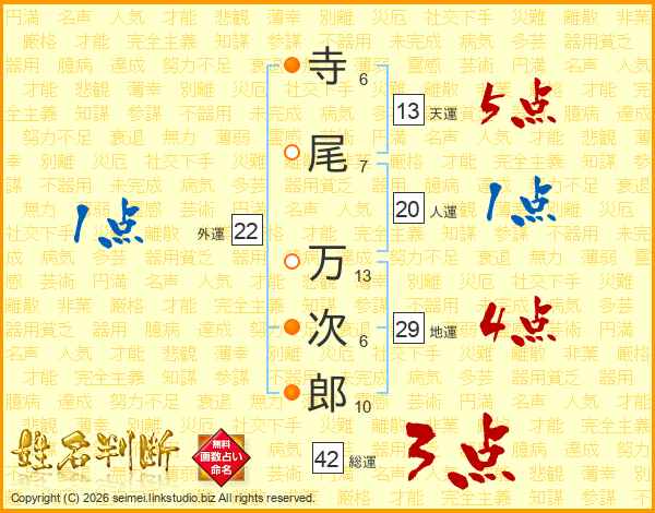 寺尾万次郎さんの天運は13画の5点!
