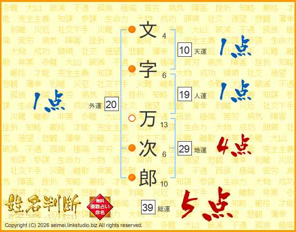 文字万次郎さんの総運は39画の5点!