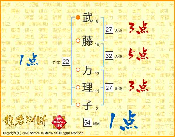 武(8画)藤(19画) 万(13画)理(11画)子(3画)