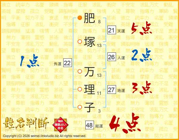 肥塚万理子さんの総運は48画の4点!