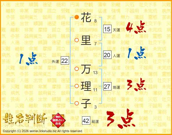 花里万理子さんの総運は42画の3点!