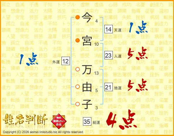 今宮万由子さんの総運は35画の4点!