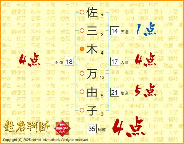 佐三木万由子さんの総運は35画の4点!