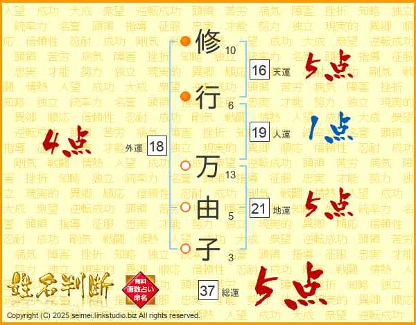 修(10画)行(6画) 万(13画)由(5画)子(3画)