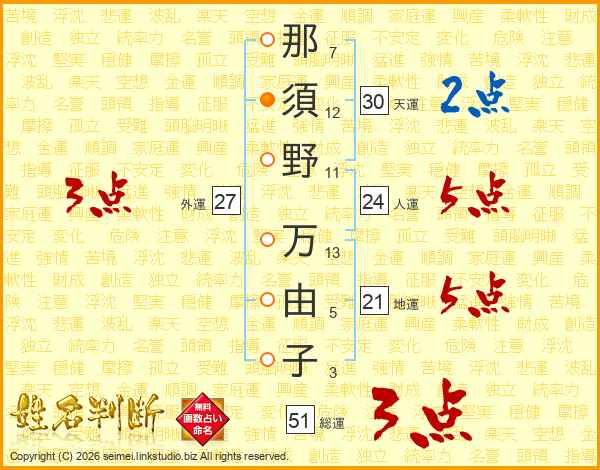 那須野万由子さんの総運は51画の3点!