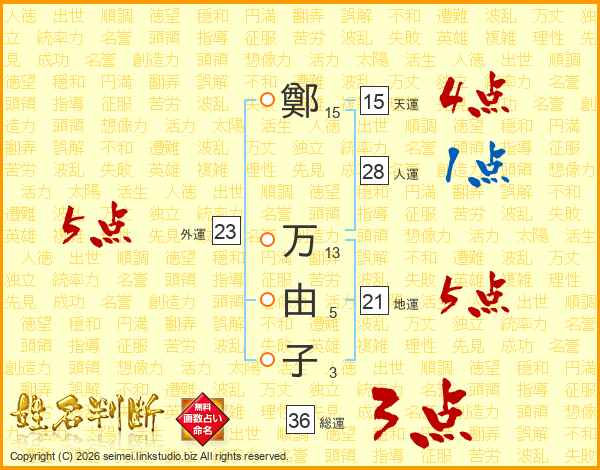 鄭万由子さんの外運は23画の5点!
