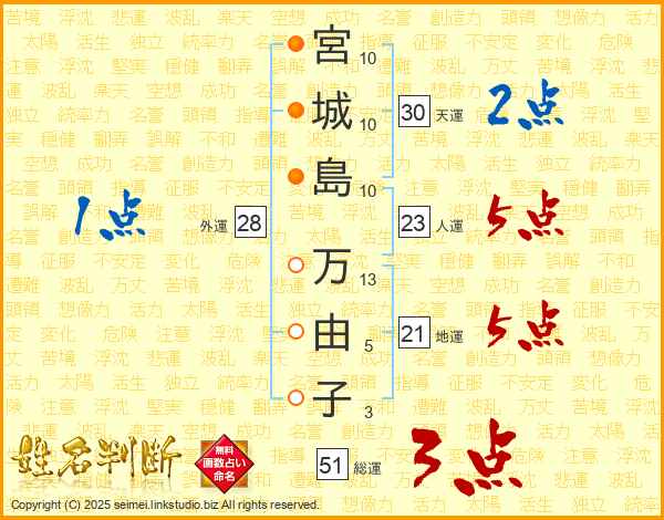宮城島万由子さんの総運は51画の3点!