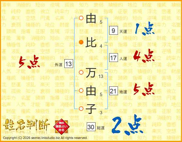 由比万由子さんの総運は30画の2点!