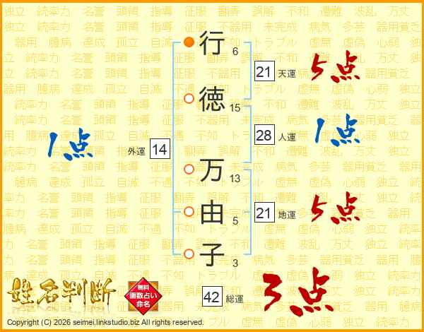 行徳万由子さんの外運は14画の1点!