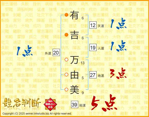 有吉万由美さんの総運は39画の5点!