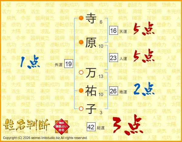 寺原万祐子さんの天運は16画の5点!