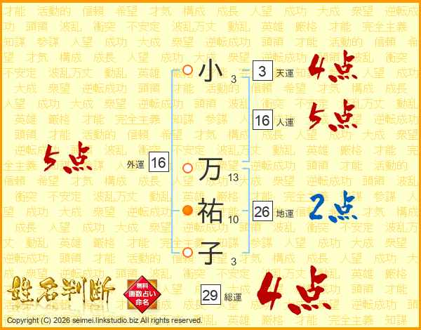 小万祐子さんの総運は29画の4点!