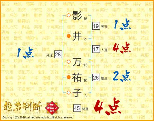 影井万祐子さんの総運は45画の4点!