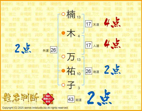 楠木万祐子さんの天運は17画の4点!