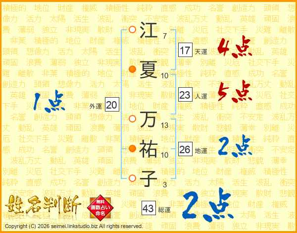江夏万祐子さんの総運は43画の2点!