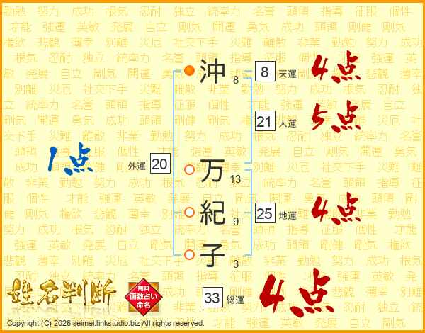 沖万紀子さんの総運は33画の4点!