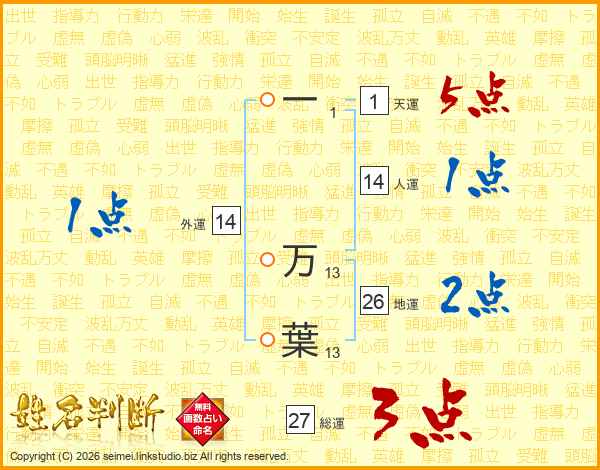 一万葉さんの天運は1画の5点!