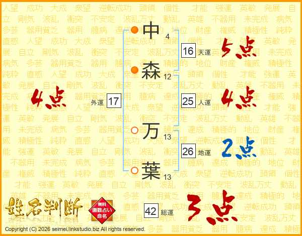 中森万葉さんの総運は42画の3点!