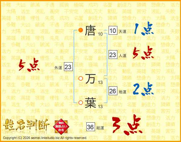 唐万葉さんの地運は26画の2点!