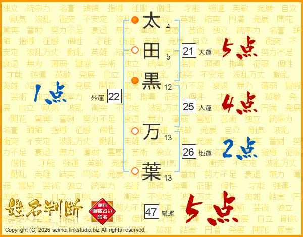 太田黒万葉さんの総運は47画の5点!