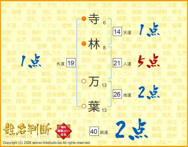 寺林万葉さんの人運は21画の5点!
