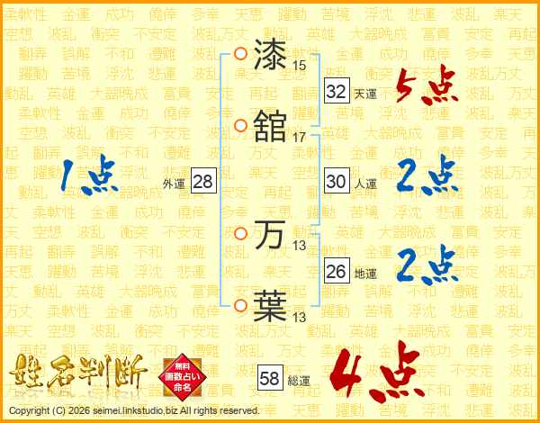 漆舘万葉さんの総運は58画の4点!