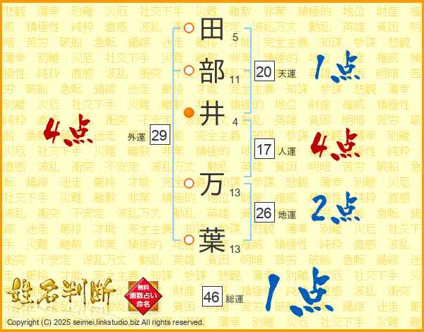 田部井万葉さんの天運は20画の1点!