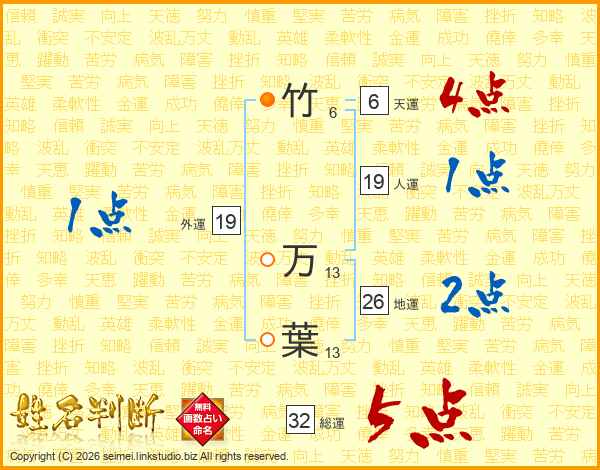 竹万葉さんの総運は32画の5点!