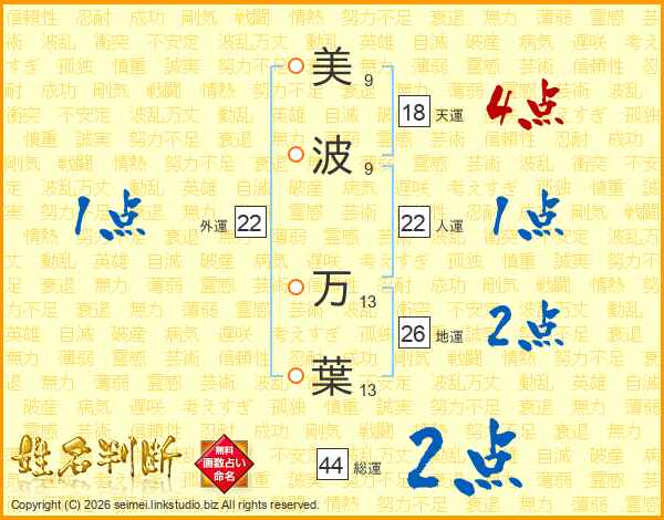 美波万葉さんの総運は44画の2点!