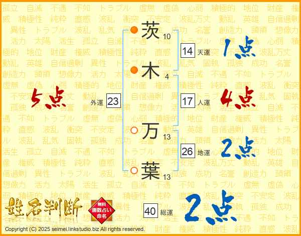 茨木万葉さんの天運は14画の1点!
