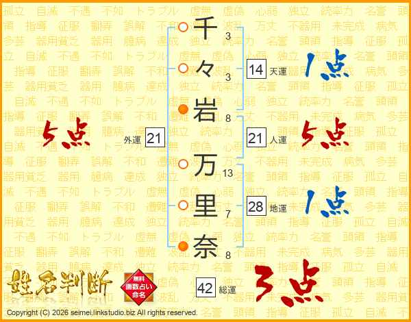 千々岩万里奈さんの外運は21画の5点!