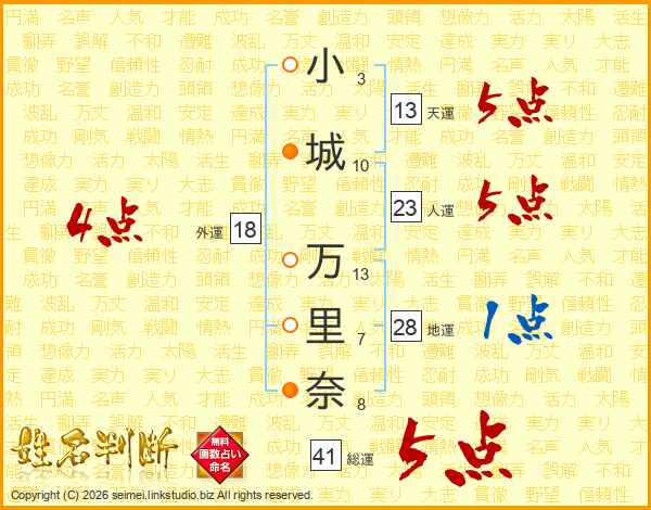 小城万里奈さんの総運は41画の5点!