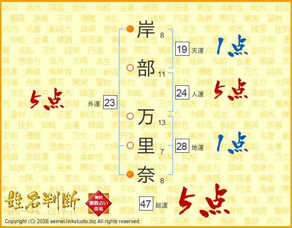 岸部万里奈さんの総運は47画の5点!