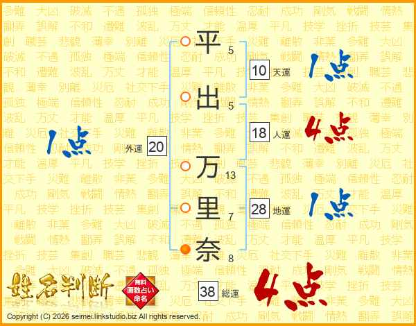 平出万里奈さんの総運は38画の4点!